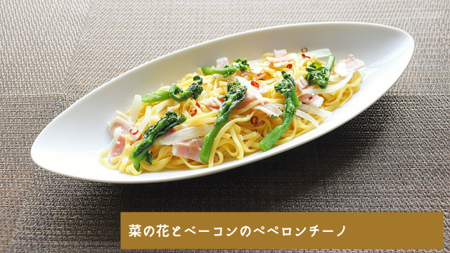 ・パスタ:菜の花とベーコンのペペロンチーノ