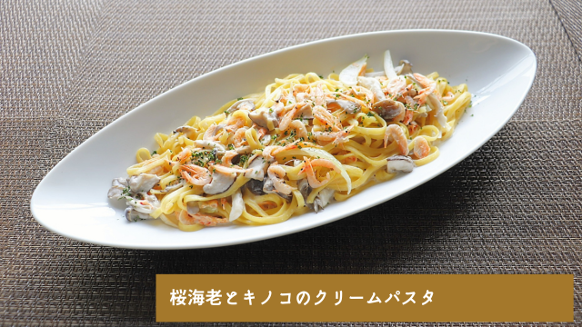 ・パスタ:桜海老とキノコのクリームパスタ