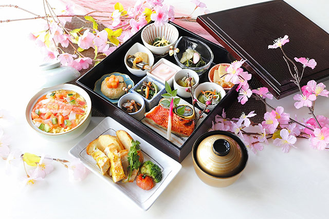 春が詰まった彩り豊かなお弁当、少しずついろいろな味をお楽しみいただけます。
